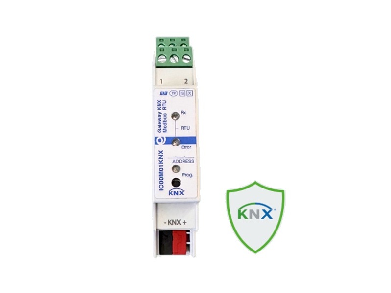 IC00M01KNX ist ein KNX/Modbus-Gateway mit 250 konfigurierbaren Kanälen zur Einbindung von Modbus-RTU-Geräten über RS485. Es unterstützt Modbus-Master und -Slave, bietet 50 Logikfunktionen sowie vordefinierte Regelalgorithmen (z.?B. für Temperatur). Eine „Virtual Holder Logic“ ermöglicht Präsenzerkennung, etwa für Hotelzimmer. Konfiguration erfolgt per ETS, inklusive KNX Data Secure.