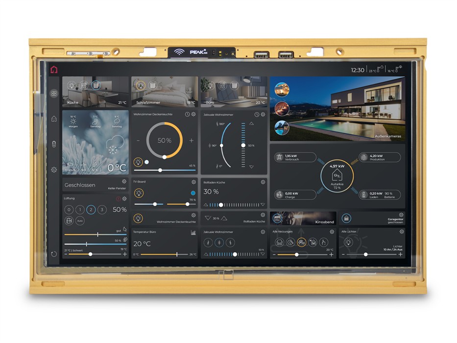 Il Control 16 è un potente pannello touch con uno schermo particolarmente ampio rispetto all'alloggiamento. Il pannello di comando Full HD da 15,6 pollici con visualizzazione YOUVI può essere utilizzato per il controllo di stanze o edifici, come display di stato e informazioni, per applicazioni multimediali o come interfono per citofoni. Cinque tasti funzione integrati lateralmente possono essere assegnati individualmente a dispositivi e comandi http. In combinazione con la visualizzazione YOUVI è possibile anche l'assegnazione con logiche. Il pannello touch KNX è progettato per un funzionamento continuo e duraturo e può essere utilizzato come client (ad es. con Gira Homeserver) o come server autonomo. Con le diverse varianti di colore della cornice e i vetri frontali personalizzabili, è possibile soddisfare qualsiasi esigenza di design. Il Control 16 può essere utilizzato in modo flessibile grazie alle diverse opzioni di montaggio.